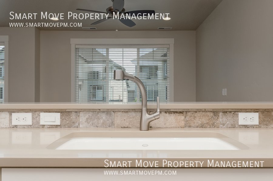 Three story town-home. End unit. Gorgeous great room high-end kitchen: stainless steel appliances, including gas range, tile and tons of beautiful counter and cupboard space. Stylish and modern hardware and fixtures. Two master bedrooms, both with walk in closets with attached baths. Third floor balcony. Washer dryer convenience items only. Two car garage with auto opener. Outside maintenance cared for by HOA. Neighborhood pool and clubhouse.